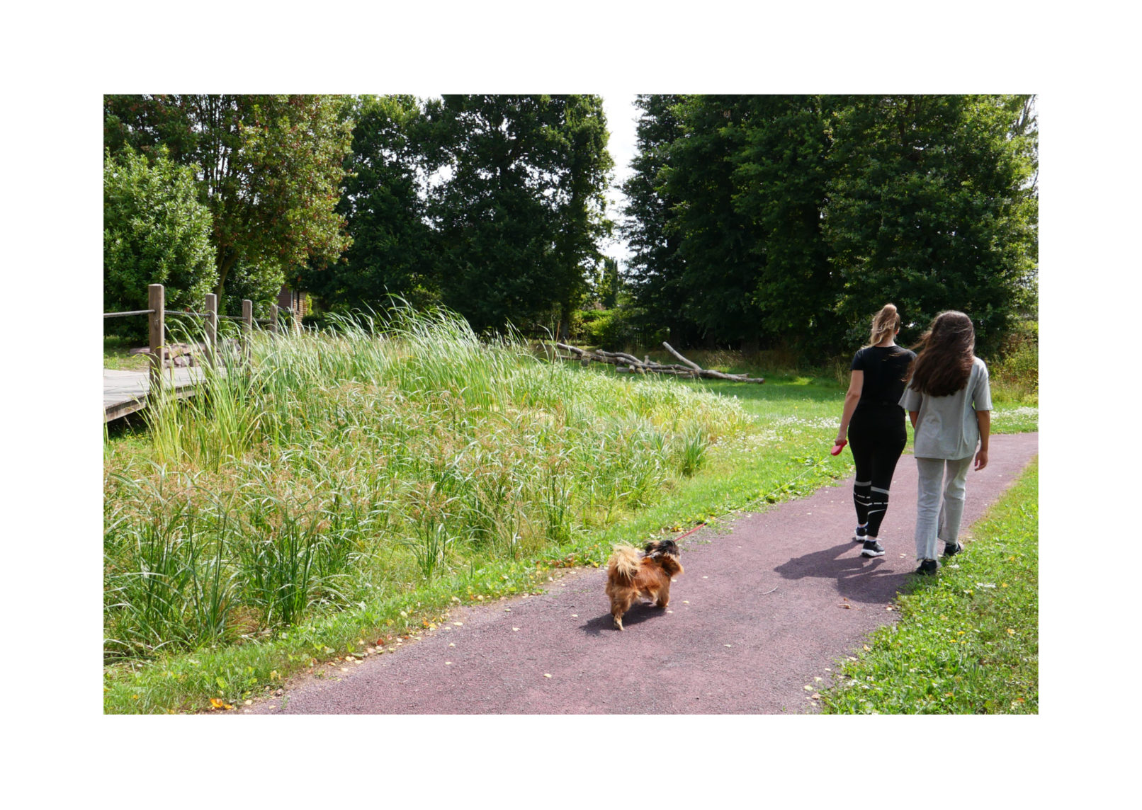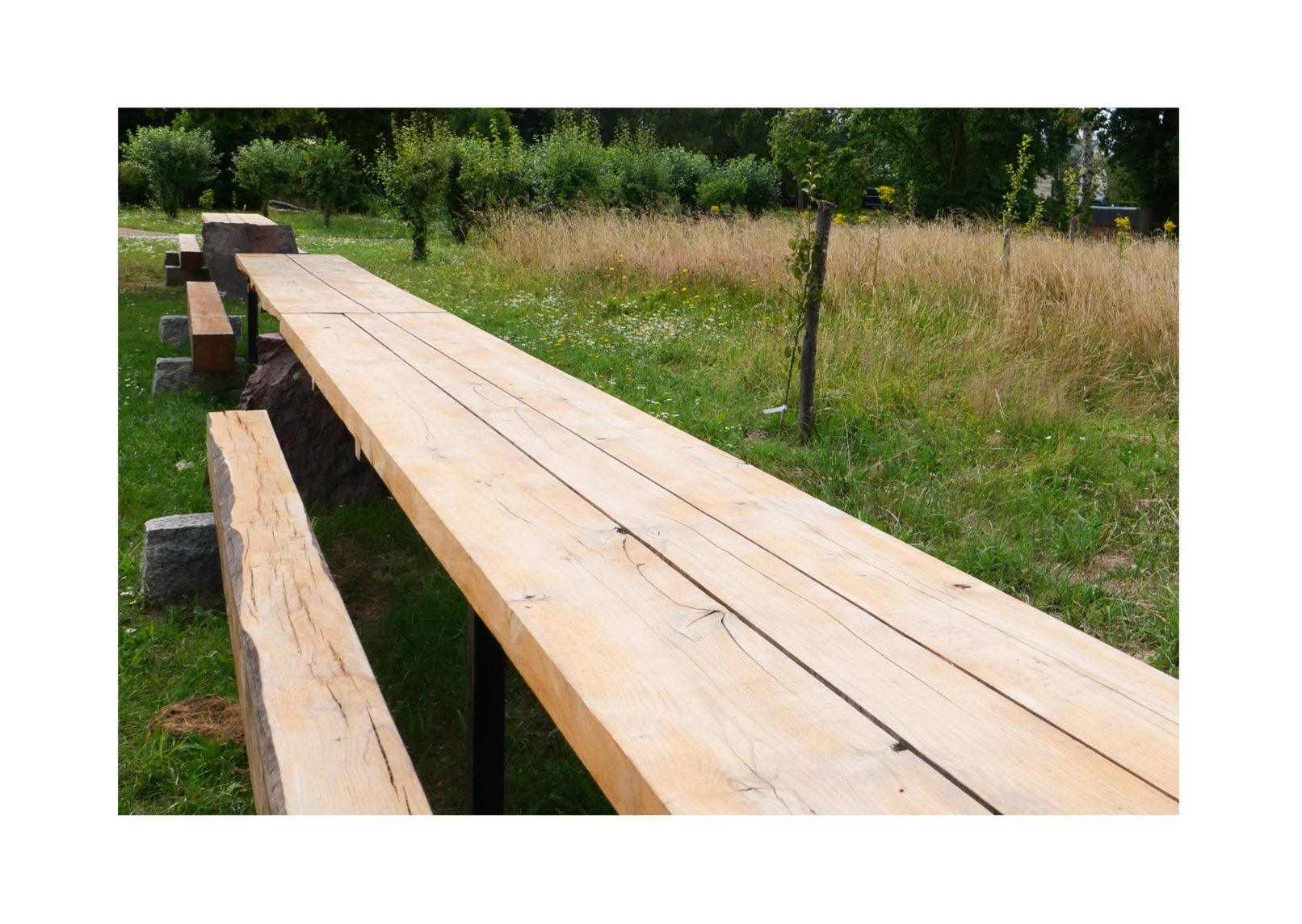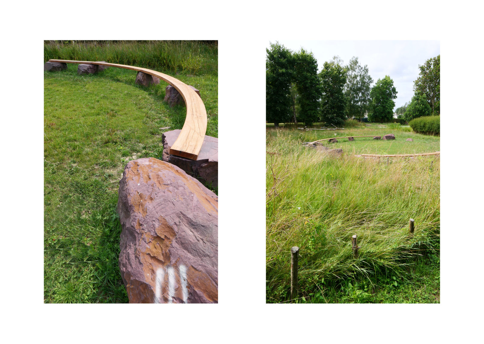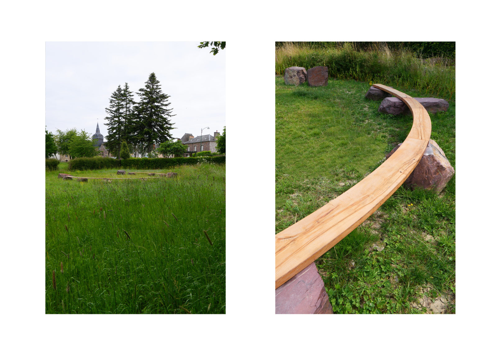 Les Jardins du Presbytère ont été réalisés entre septembre 2022 et avril 2023. Ils reflètent les préoccupations contemporaines : la recherche d’un juste compromis entre la maîtrise et le spontanée. Ils ne sont ni figés ni taillés au cordeau, c’est un milieu en mouvement que l’on accompagne au cours de son évolution. Respecter l’existant et le déjà-là, intervenir sobrement pour dessiner un paysage et favoriser des usages, se préoccuper de la provenance et de la mise en oeuvre des matériaux, proposer un autre regard sur le vivant, jouer avec les formes d’expression naturelle d’un écosystème de la prairie aux fourrés et des fourrés au bois, sont autant de principes qui ont été au centre de la conception des Jardins du Presbytère. Ce jardin en coeur de bourg est à la fois une place publique et un jardin sauvage. Deux axes connectent le patrimoine bâti et les milieux naturels. Le premier relie le clocher de l’église et le cercle de pierres (à l’est du jardin) ; le second raccorde l’ancien Presbytère et le ponton (au sud du jardin). L’ancien verger du Presbytère a été agrandi. Il y pousse 14 variétés de pommiers, poiriers, pruniers et cerisiers. En contre bas de la parcelle, se déploie la zone humide. Ici, se côtoient prairies naturelles et prairies fleuries ; plantes aquatiques, semi-aquatiques et hélophyptes, autour et dans la mare ; des haies de saules et, bientôt, des bosquets en libre évolution.