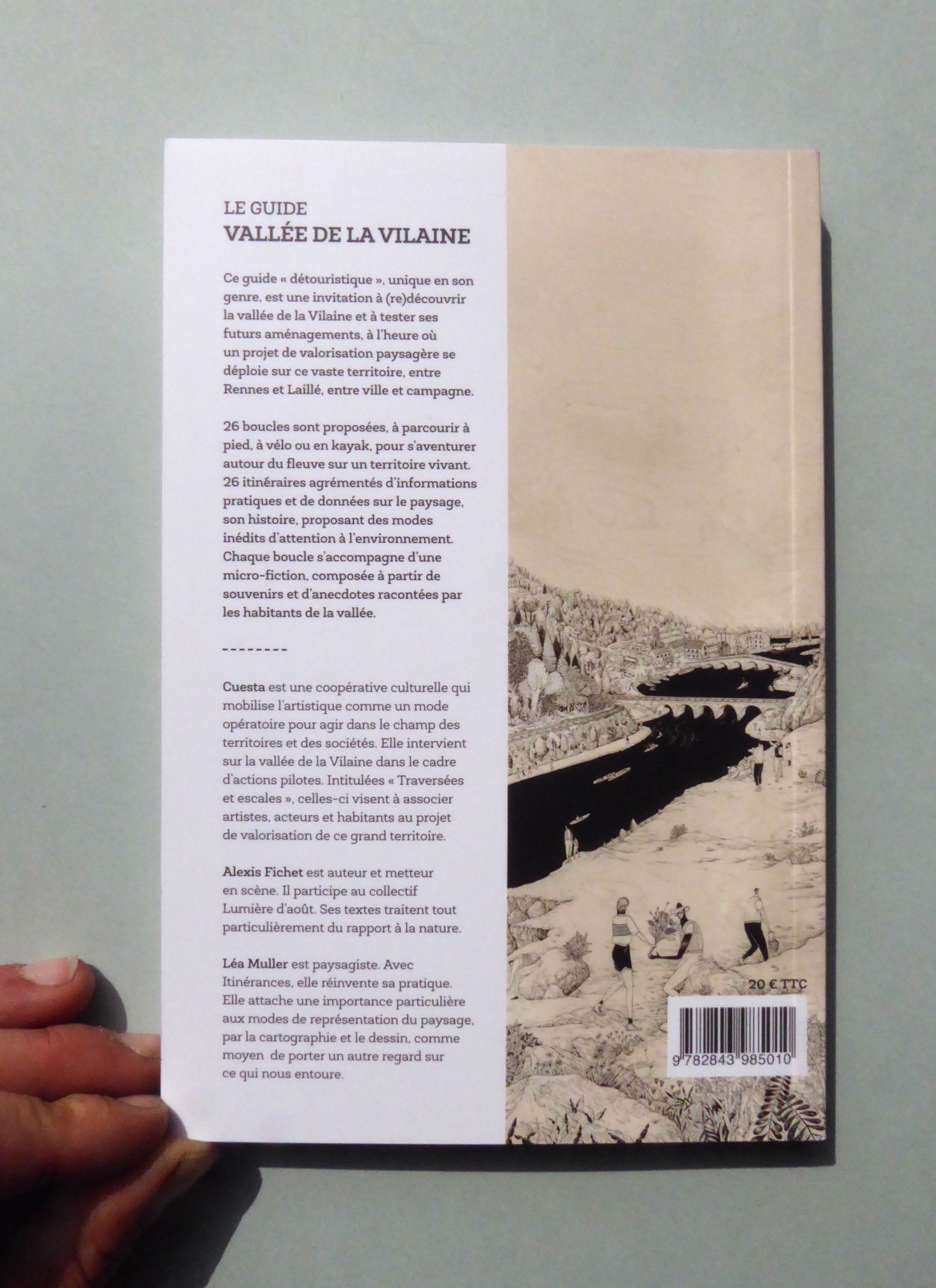 Ce guide « détouristique », unique en son genre, est une invitation à (re)découvrir la vallée de la Vilaine et à tester ses futurs aménagements, à l’heure où un projet de valorisation paysagère se déploie sur ce vaste territoire, entre Rennes et Laillé, entre ville et campagne. 26 boucles sont proposées, à parcourir à pied, à vélo ou en kayak, pour s’aventurer autour du fleuve sur un territoire vivant. 26 itinéraires agrémentés d’informations pratiques et de données sur le paysage, son histoire, proposant des modes inédits d’attention à l’environnement.Chaque boucle s’accompagne d’une micro-fiction, composée à partir de souvenirs et d’anecdotes racontées par les habitants de la Vallée.
