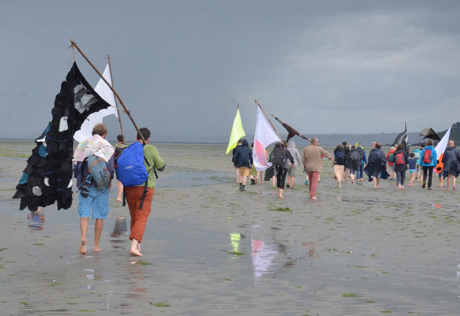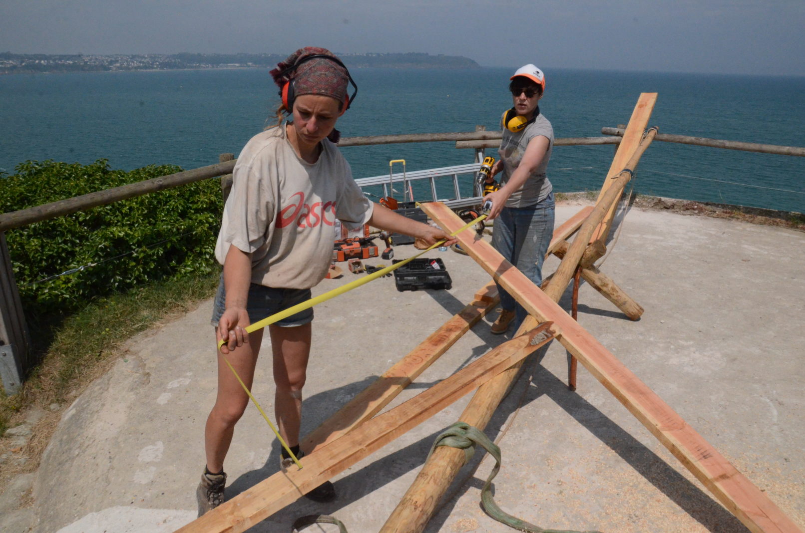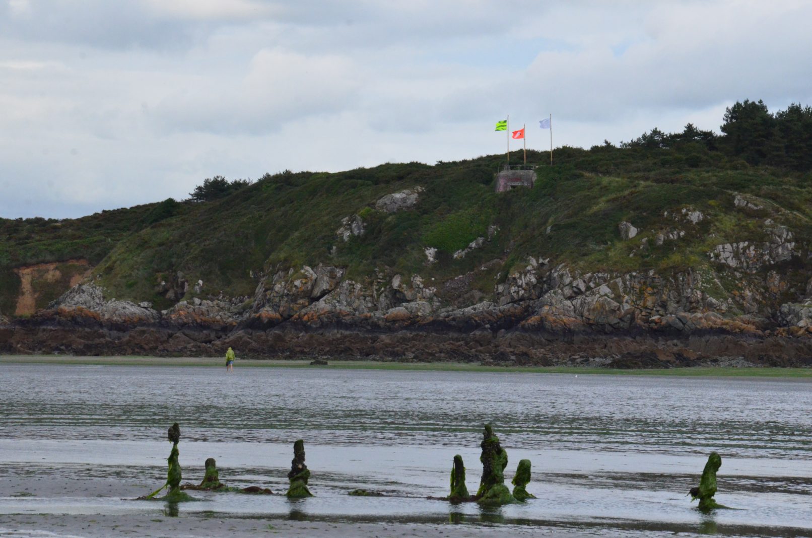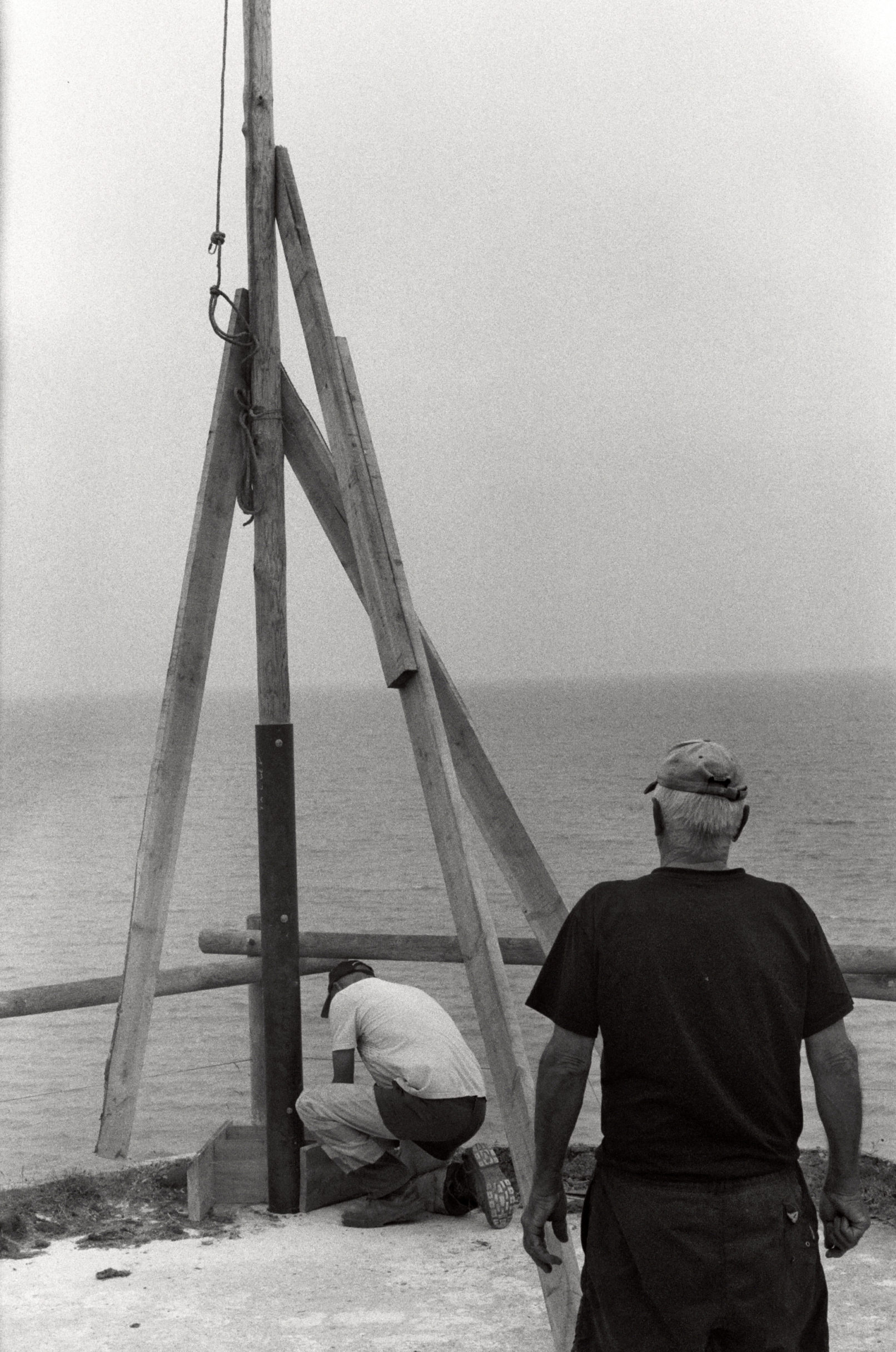 Fabrication et installation de trois mâts dressés face à la mer, à la pointe du Grouin. Création d’une quinzaine de drapeaux pour initier un nouveau langage pour la baie.