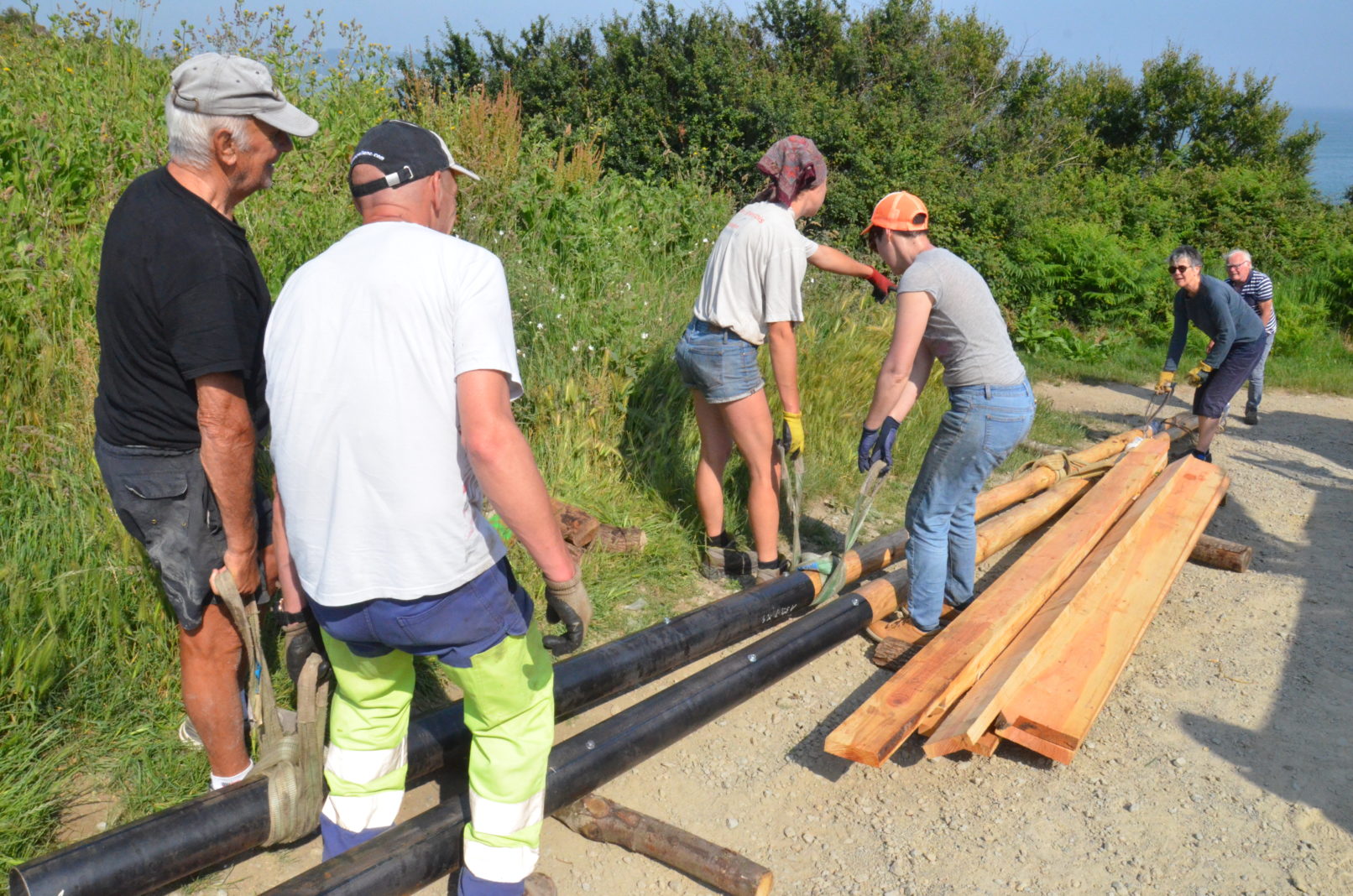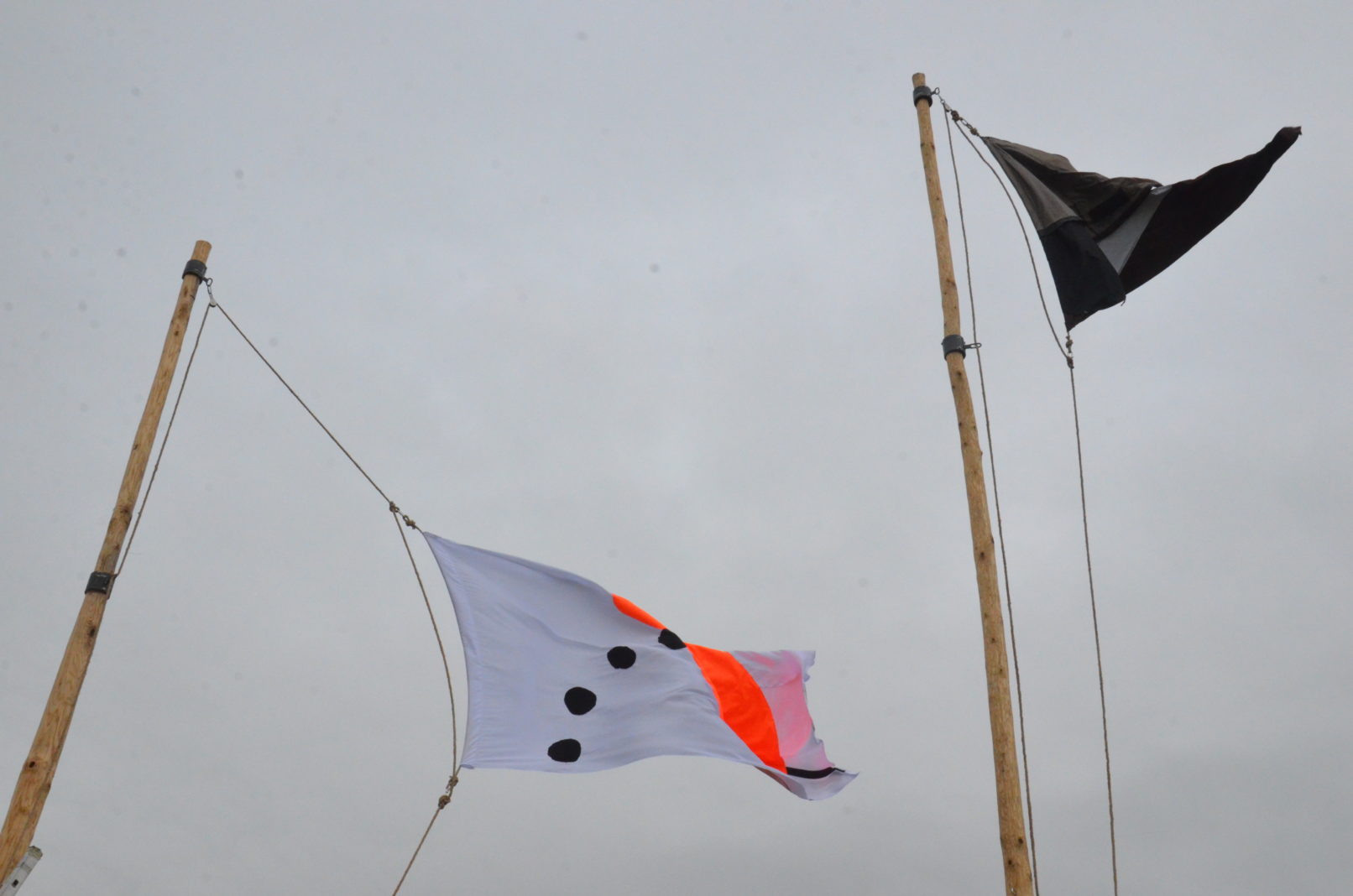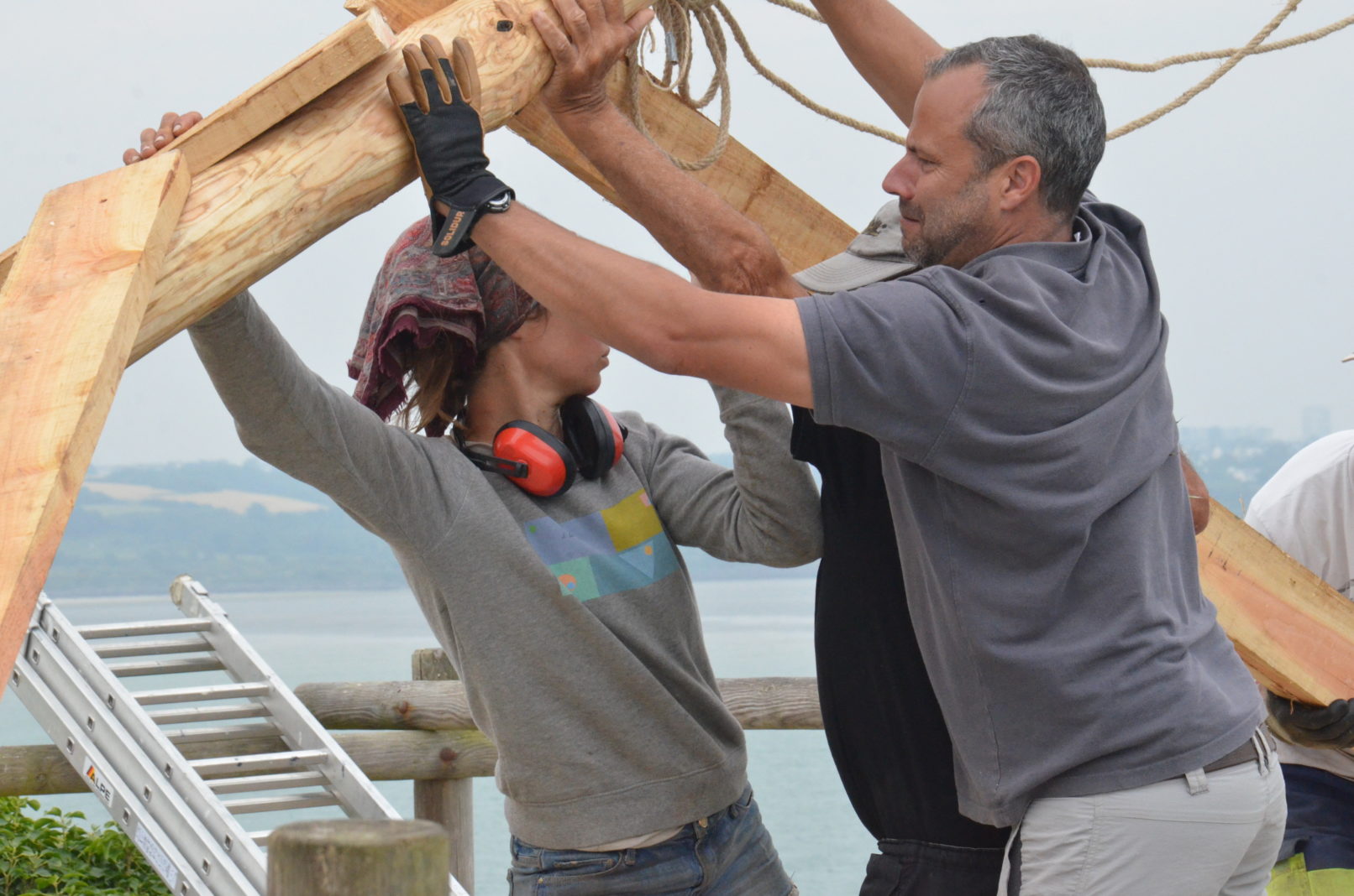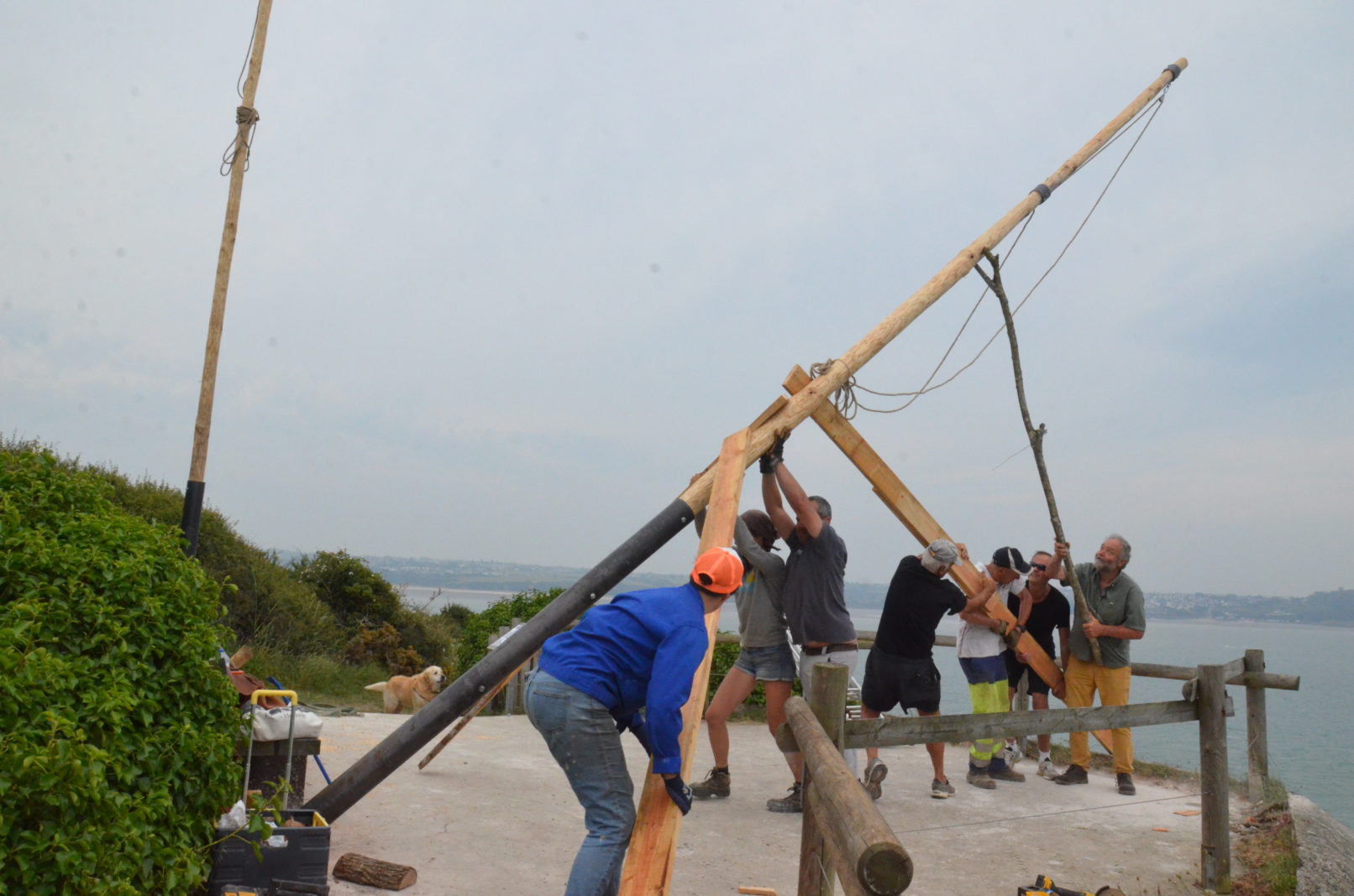Fabrication et installation de trois mâts dressés face à la mer, à la pointe du Grouin. Création d’une quinzaine de drapeaux pour initier un nouveau langage pour la baie.