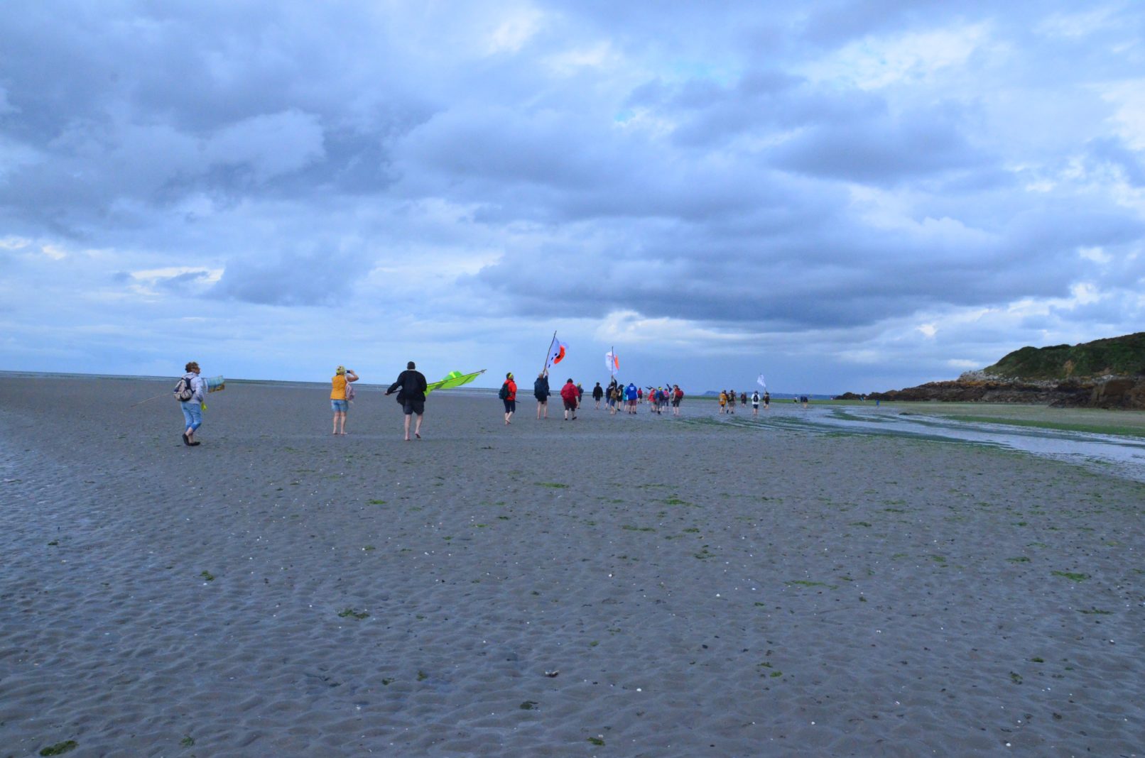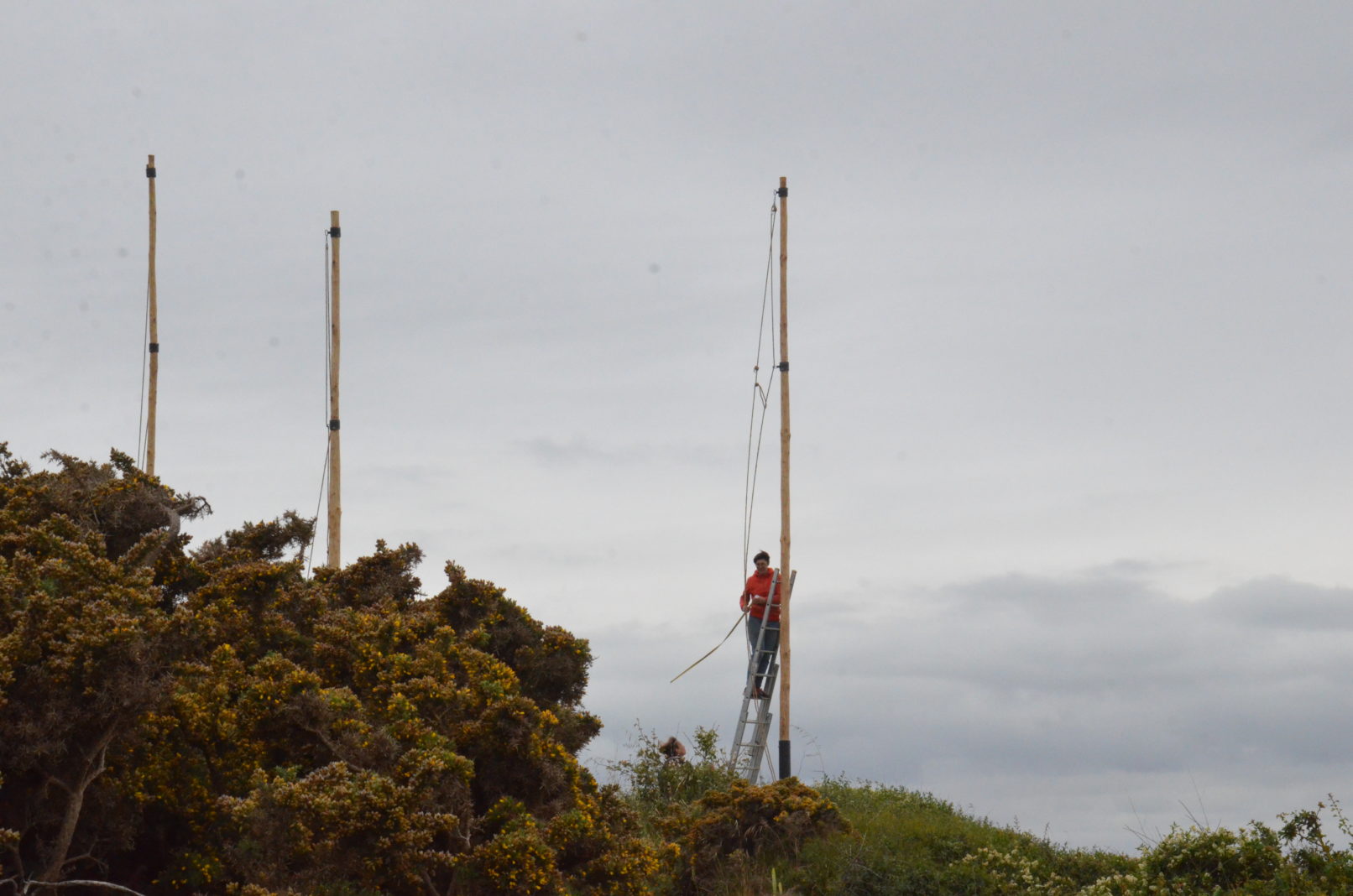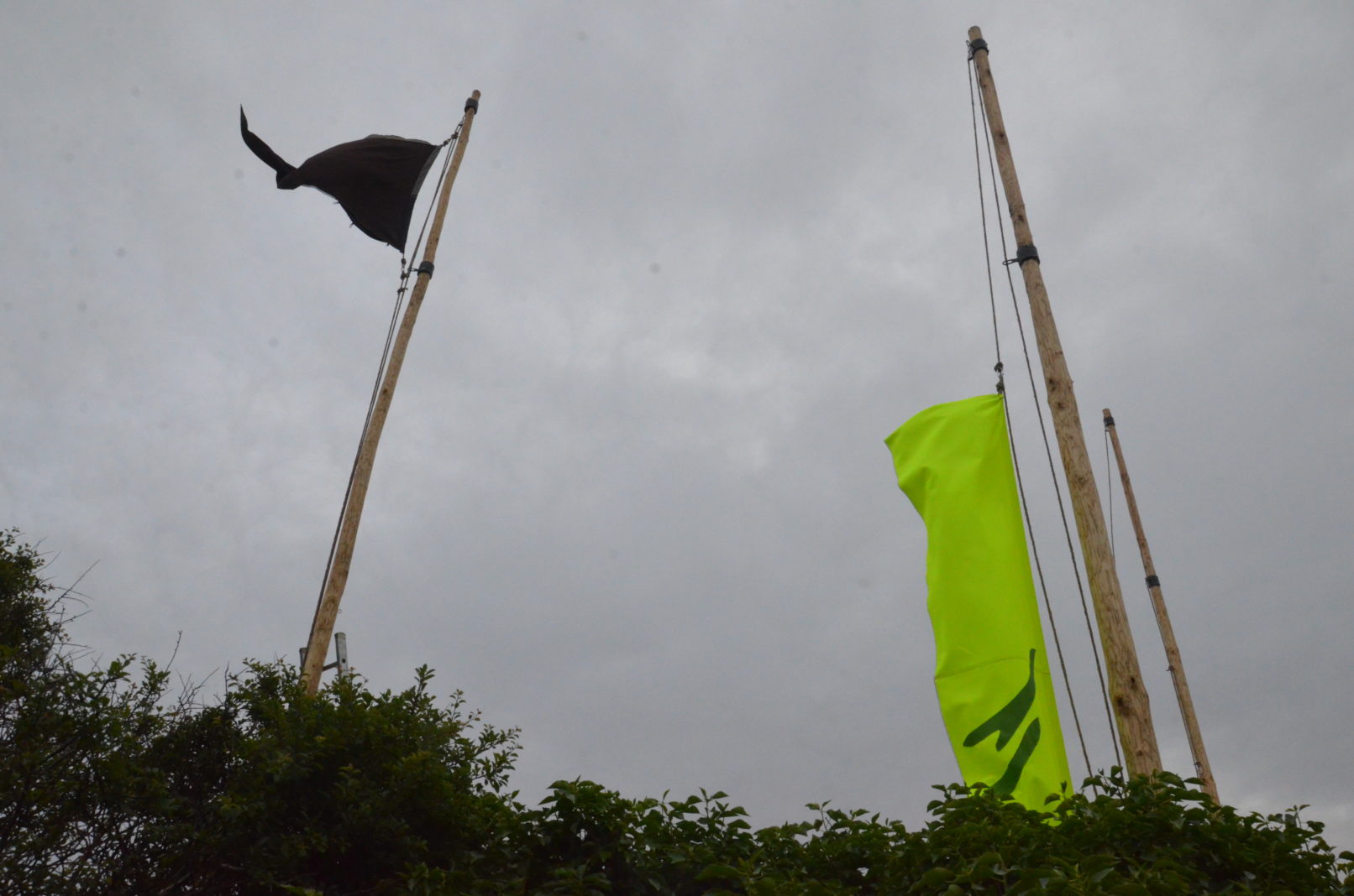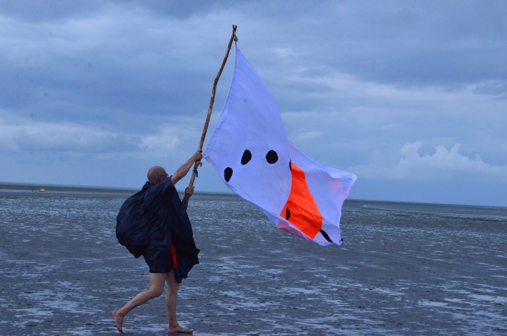 Fabrication et installation de trois mâts dressés face à la mer, à la pointe du Grouin. Création d’une quinzaine de drapeaux pour initier un nouveau langage pour la baie.