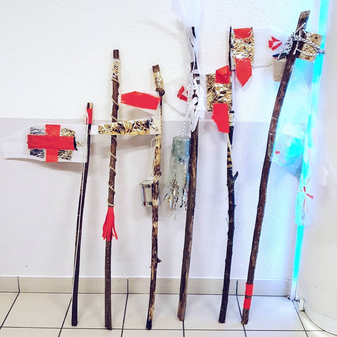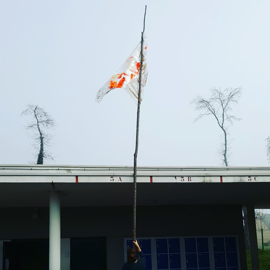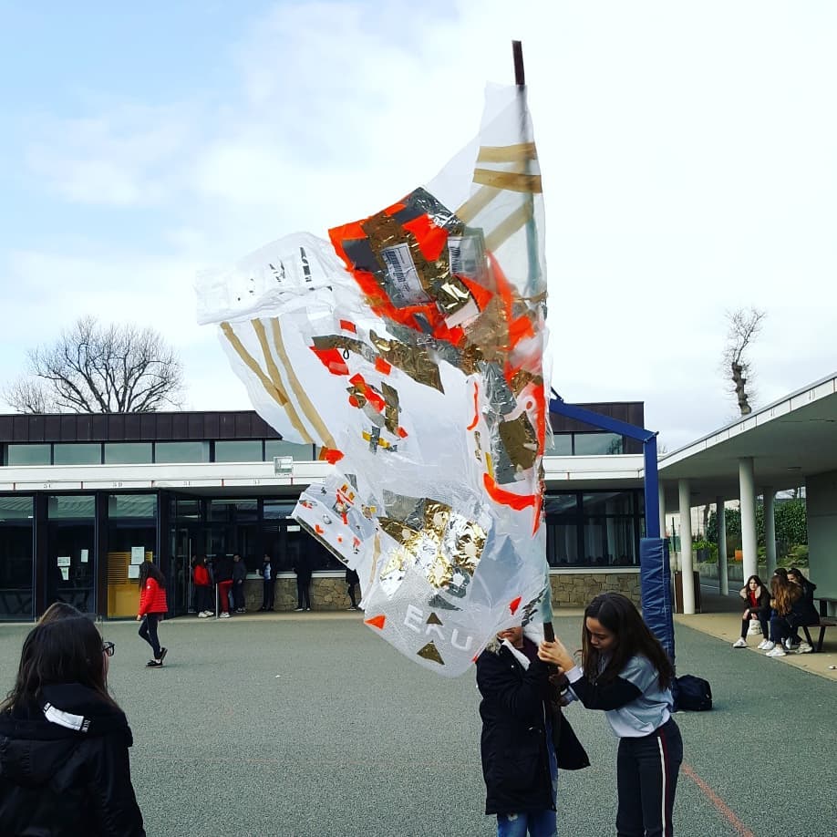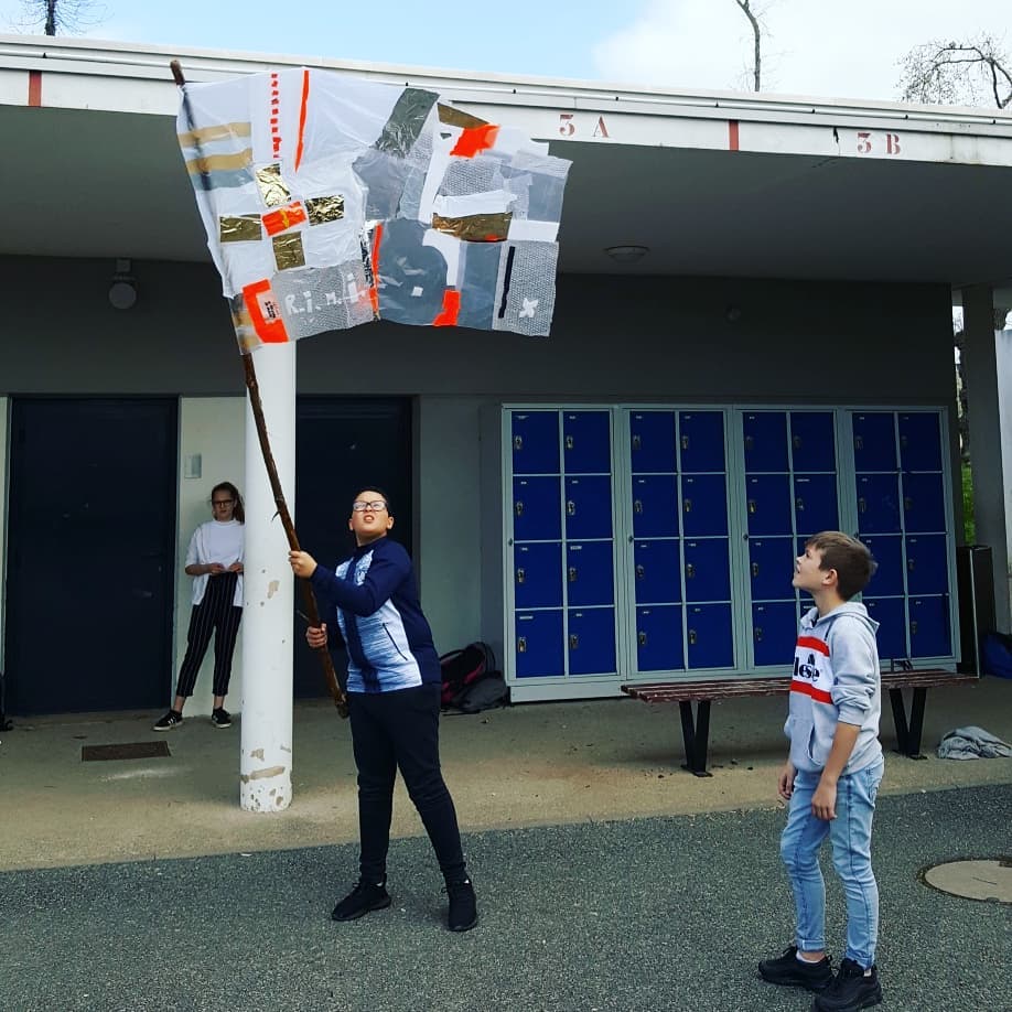 Résidence dans le collège Pierre Brossolette de Bruz – réalisation de drapeaux, totems et bâtons de marche