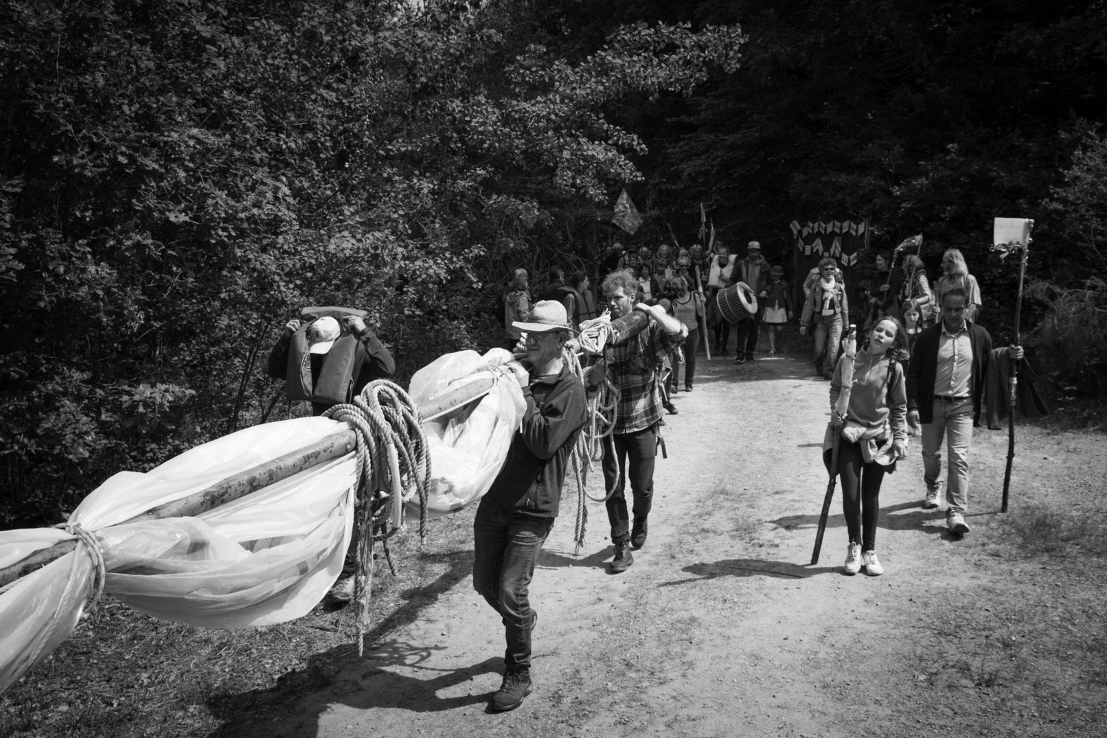Inspirées des traditions vernaculaires, des fêtes paysannes mais aussi des rites contemporains, des mythes d’hier et de demain, des chants d’ici et d’ailleurs, les traversées chantées sont des marches collectives qui relient les habitants des villes et des villages au fleuve. Elles invitent à imaginer collectivement de nouveaux liens à la Vilaine.