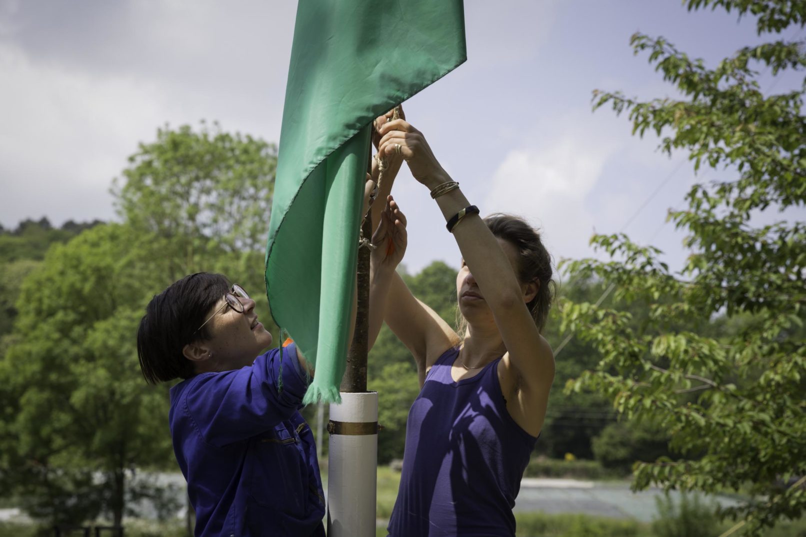 Réalisation des bâtons et bannières en ateliers avec des collégiens